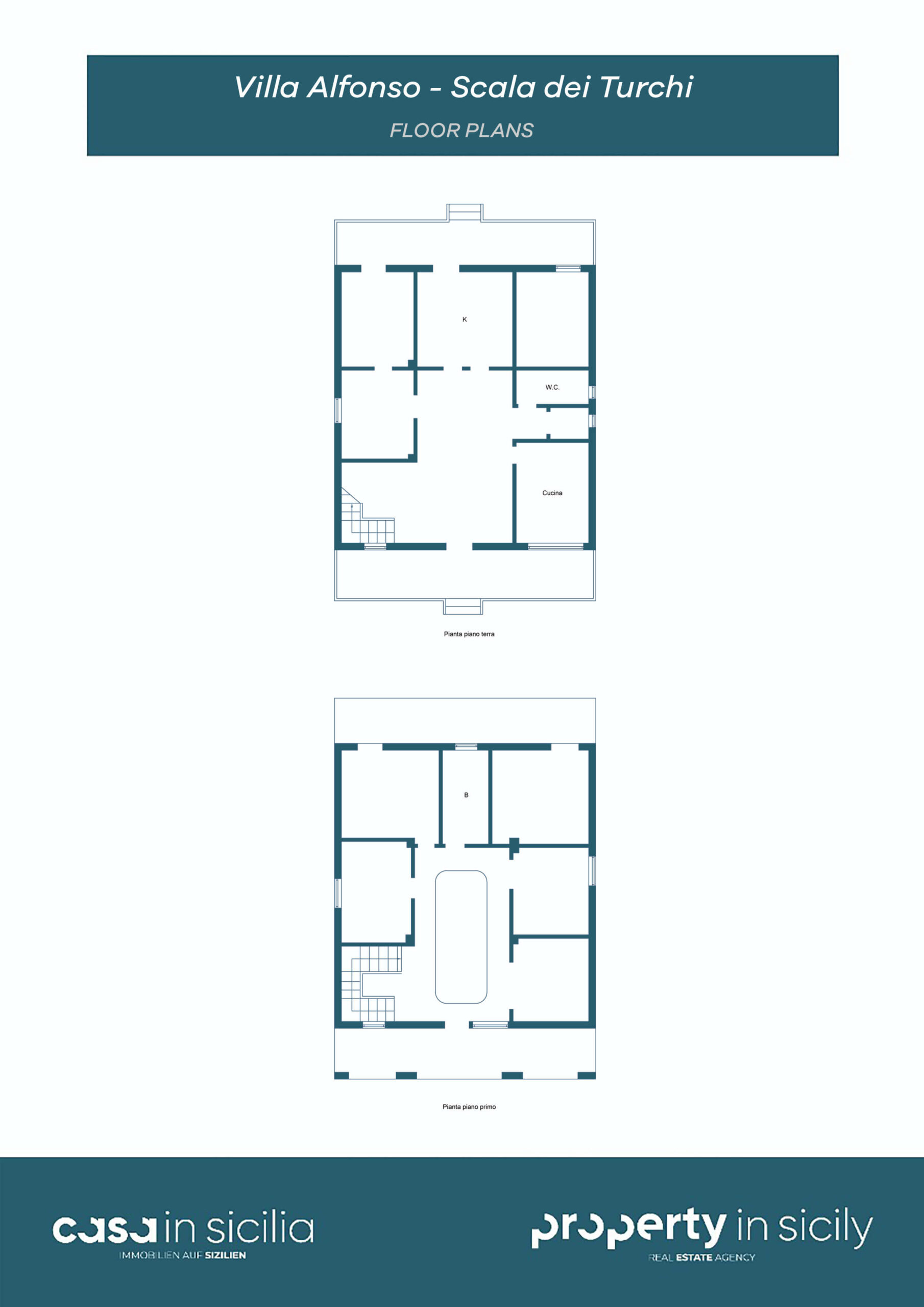 Im Obergeschoss befinden sich vier Schlafzimmer, die alle als Doppelzimmer eingerichtet sind, wobei das kleinste der vier Zimmer mit 10 m² eher als Einzelzimmer oder möglicherweise als Arbeitszimmer genutzt werden kann. Die anderen drei sind alle recht geräumig, zwei davon haben direkten Zugang zum sonnigen Garten und Blick auf den überdachten Balkon auf der Rückseite. Ein großes Familienbadezimmer verfügt über eine Eckbadewanne.Eine zweite Treppe führt Sie auf die Panorama-Dachterrasse mit dem zauberhaften Blick auf die Scala dei Turchi in der Ferne. Drei Abstellräume bieten viel Platz für Gartenmöbel.